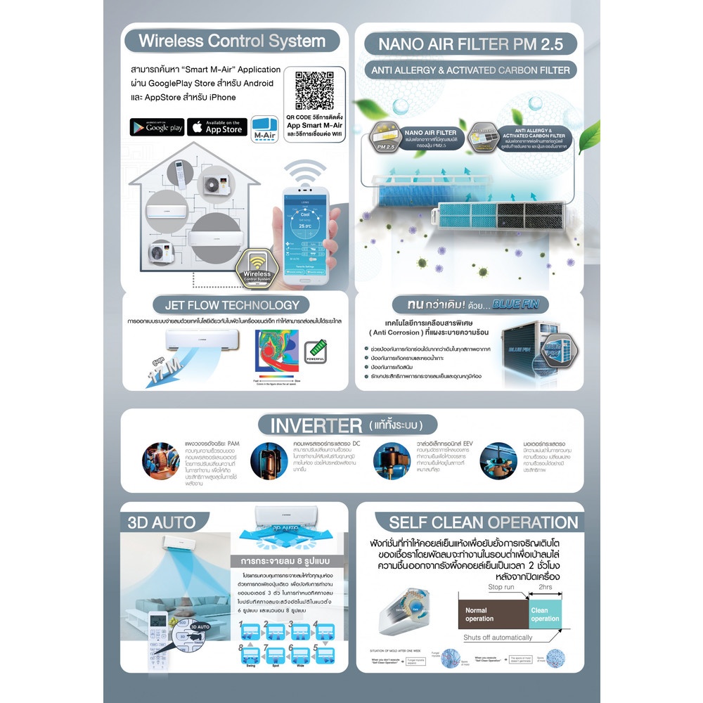 3D Auto สวิงอัตโนมัติ ใบปรับทิศทางลมแนวตั้ง 6 รูปแบบ แนวนอน 8 รูปแบบ