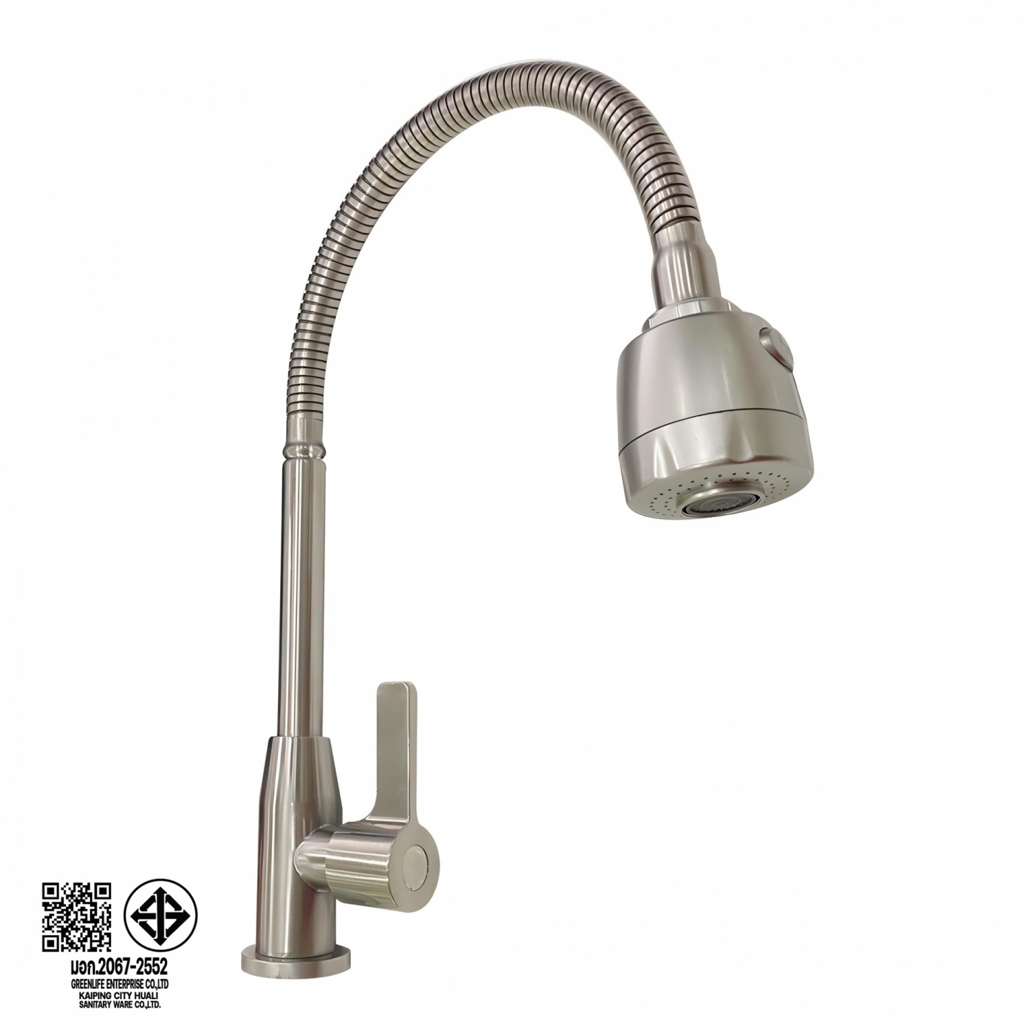 ชุดก๊อกอ่างล้างจานสแตนเลสปัดซาติน เคลือบสารพิเศษกันสนิม ปรับน้ำได้ 2 ระดับงวงแสตนเลส IR-52108