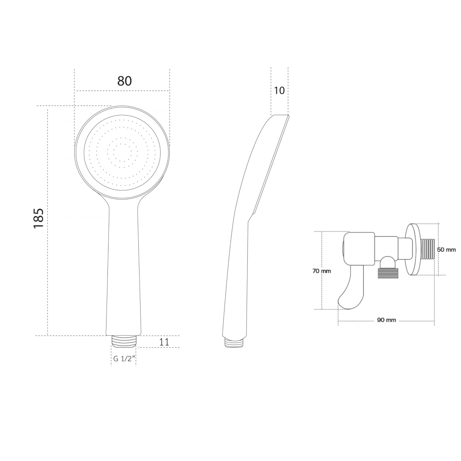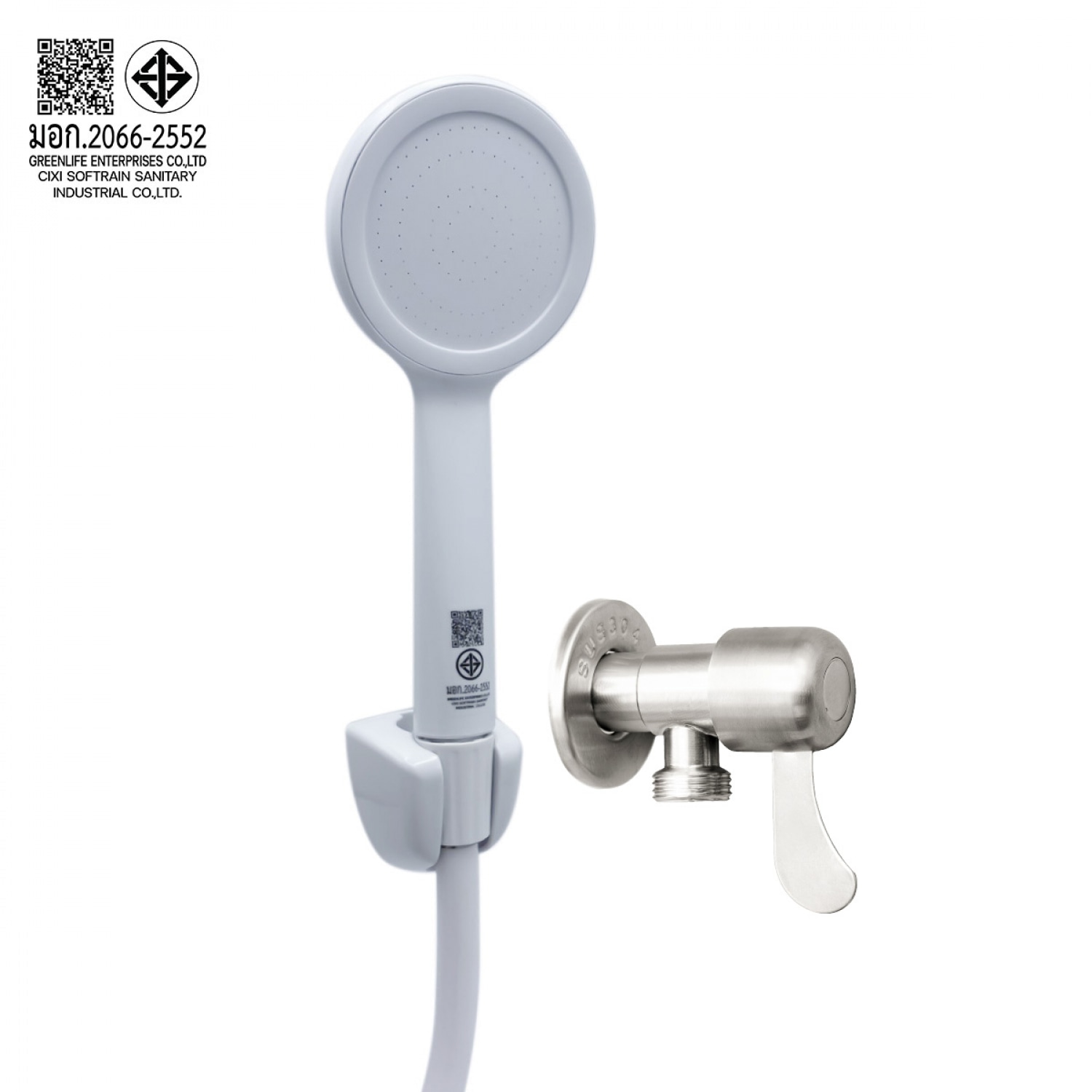 ชุดฝักบัวสีขาว(น้ำนุ่ม)พร้อมสายเครื่องทำน้ำอุ่น และวาล์วฝักบัวสแตนเลสด้ามปัด CD-16103P2106