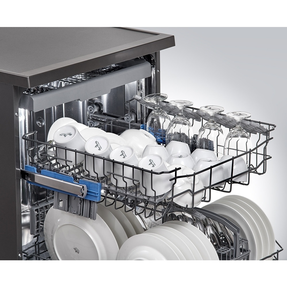 2. ตะกร้าบน แบบพับได้ ให้การวางแก้วและภาชนะได้หลากหลายพร้อมชั้นวางแก้วขนาดใหญ่แบบปรับได้ และสามารถปรับระดับความสูงได้เพื่อเพิ่มพื่นที่วางจานชั้นล่างได้มากยิ่งขึ้นและใส่ภาชนะขนาดใหญ่ได้ด้วย