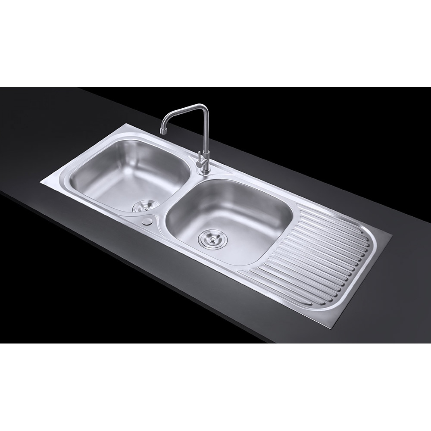อ่างล้างจานคุณภาพจาก MEX แบบ 2 หลุม 1 ที่พัก ชนิดติดตั้งฝังบนท็อปเคาน์เตอร์ ผลิตจากวัสดุสเตนเลสสตีล AISI201 มีความแข็งแกร่ง คงทน ไม่เป็นสนิมง่าย หลุมอ่างมีความลึกพิเศษ 14.5 ซม. ใช้งานล้างทำความสะอาดภาชนะต่าง ๆ ได้สะดวกยิ่งขึ้น ช่วยตอบโจทย์การใช้งานภายในห้องครัวของคุณได้อย่างลงตัว
