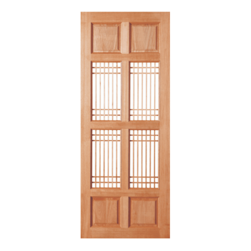 ประตูไม้สยาแดงอบแห้งเน้นความเรียบง่ายในความชื้นสัมผัส 12-15% เพื่อลดปัญหาไม้หด บวม หรือ โก่งงอ มีเนื้อไม้โทนสีน้ำตาลแดง ลายเสี้ยนที่หยาบและเงาเป็นธรรมชาติ มีความแข็งแรง คงทน ใช้งานได้ทั้งภายในและภายนอก และประกอบเข้าเดือยด้วยระบบเดือยเต็มซึ่งเป็นวิธีต่อไม้เพื่องานที่ต้องการความเข็งแรง และได้มาตรฐานมากที่สุด พร้อมทั้งยังใช้กาว E0 ซึ่งปราศจากสารก่อมะเร็งในการช่วยยึดติด และตอกตะปูเพื่อเพิ่มความแข็งแรง