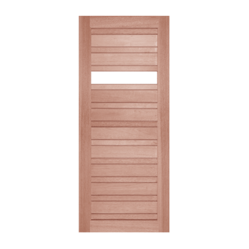 ประตูไม้สยาแดงอบแห้งเน้นความเรียบง่ายในความชื้นสัมผัส 12-15% เพื่อลดปัญหาไม้หด บวม หรือ โก่งงอ มีเนื้อไม้โทนสีน้ำตาลแดง ลายเสี้ยนที่หยาบและเงาเป็นธรรมชาติ มีความแข็งแรง คงทน ใช้งานได้ทั้งภายในและภายนอก และประกอบเข้าเดือยด้วยระบบเดือยเต็มซึ่งเป็นวิธีต่อไม้เพื่องานที่ต้องการความเข็งแรง และได้มาตรฐานมากที่สุด พร้อมทั้งยังใช้กาว E0 ซึ่งปราศจากสารก่อมะเร็งในการช่วยยึดติด และตอกตะปูเพื่อเพิ่มความแข็งแรง