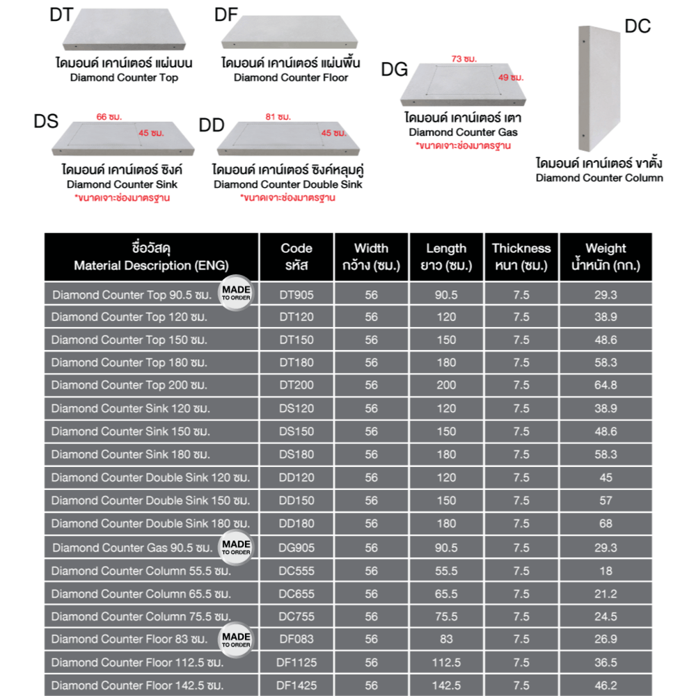 • ได้คุณภาพมีมาตรฐาน : ผลิตจากคอนกรีตมวลเบาตามมาตรฐาน มอก. ภายในเสริมด้วยเหล็กชุบกันสนิมเพื่อการรับแรงที่ดีเหมาะกับการใช้งานครัวแบบไทย