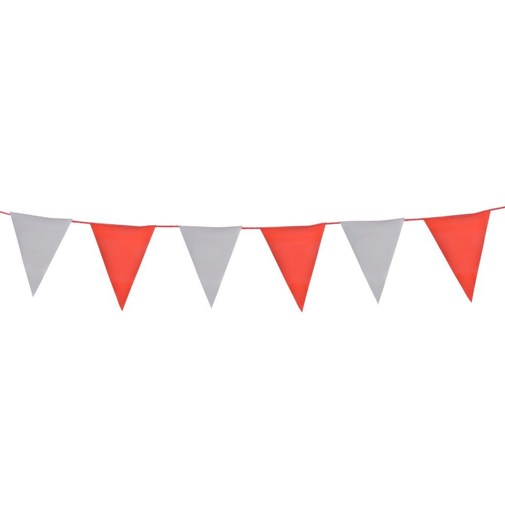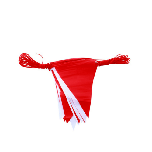 ธงราว สามเหลี่ยม ขาว-แดง ผลิตจากพลาสติก เห็นชัดเจน กันน้ำ กั้นพื้นที่อันตราย