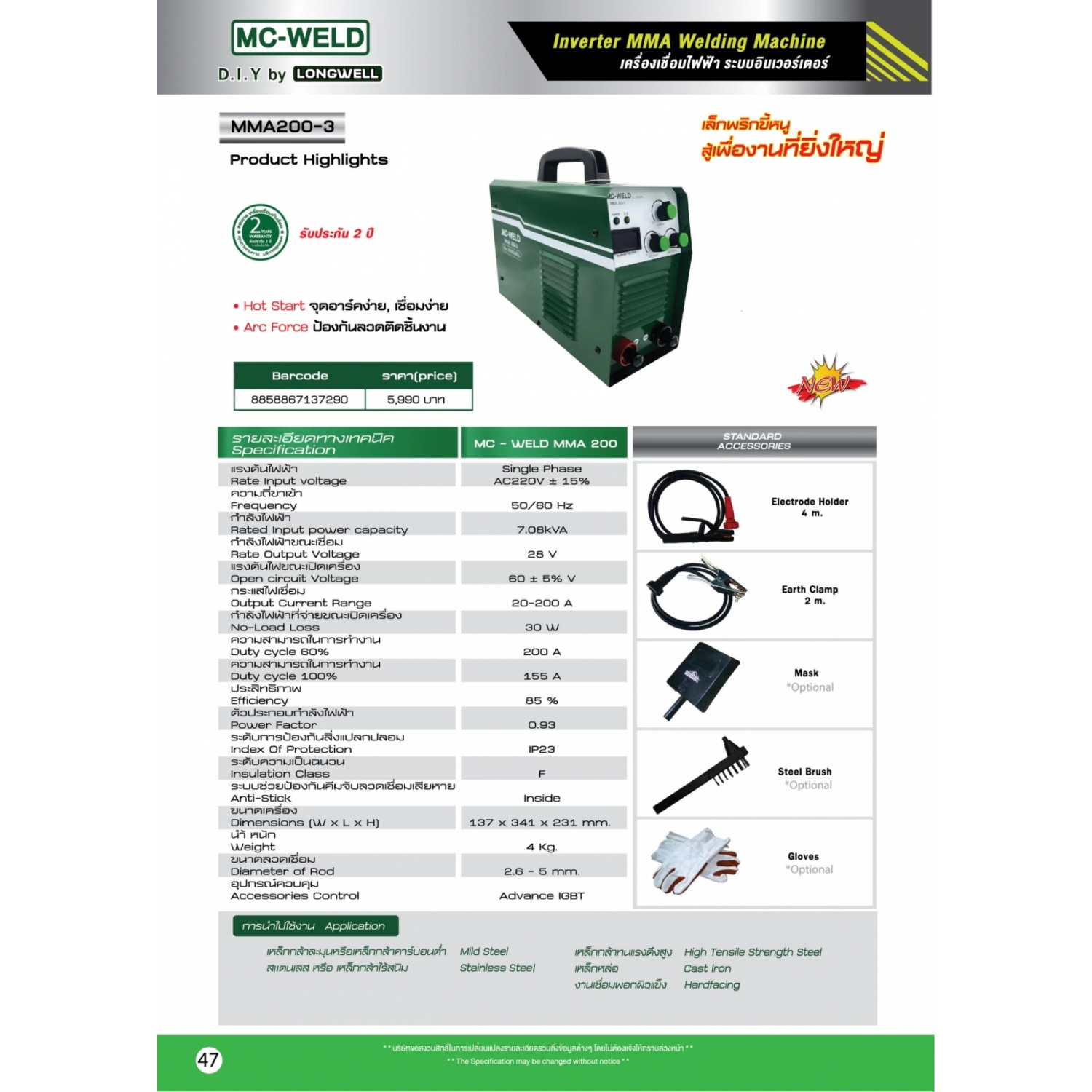 | รุ่น | MC-WELD MMA MODEL 170 |