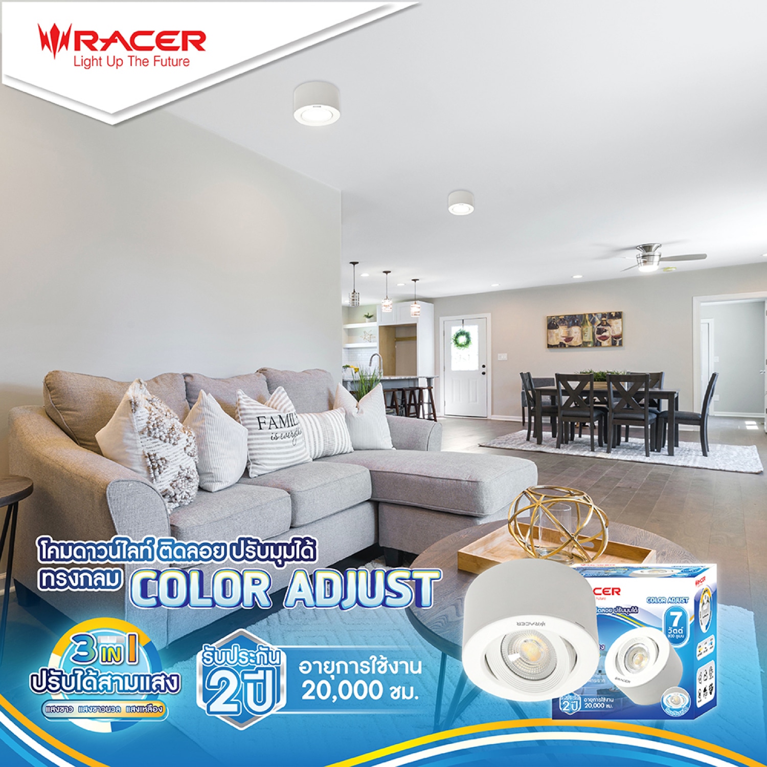โคมไฟ LED Downlight แบบติดลอย ปรับองศาได้หน้ากลม/ทรงกลม สามแสง