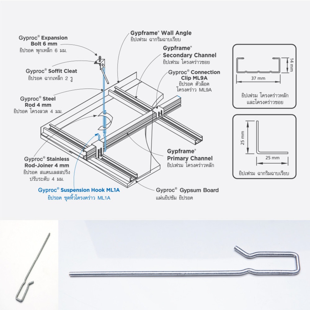 ยิปเฟรม ตัวล็อคโครงคร่าว เอ็มแอล 1 เอ เป็นชุดหิ้วโครงคร่าวคุณภาพสูง ใช้เพื่อการติตตั้งโครงคร่าวฝ้าเพดานฉาบเรียบ ทำให้อายุการใช้งานยาวนาน และไม่แอ่นตัว