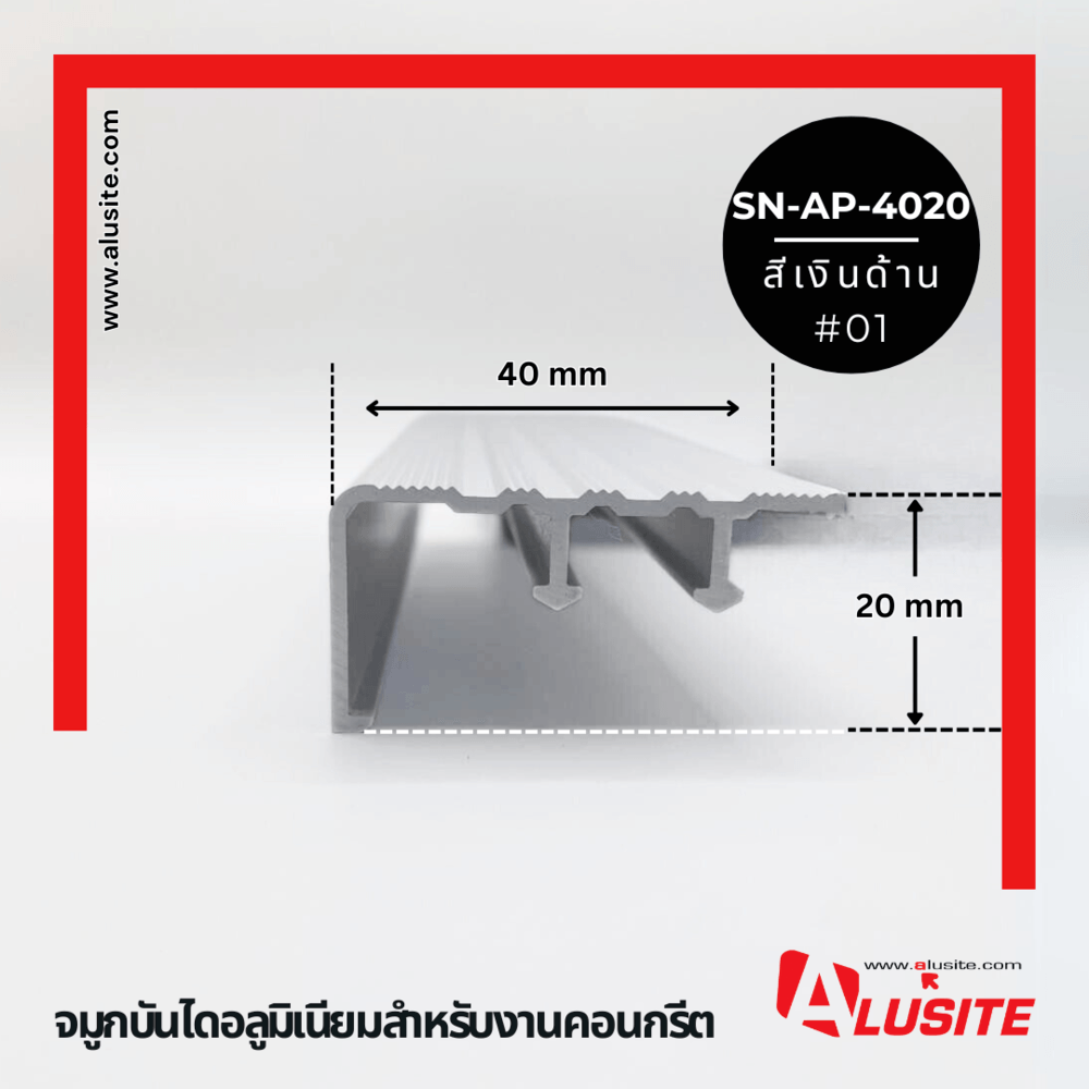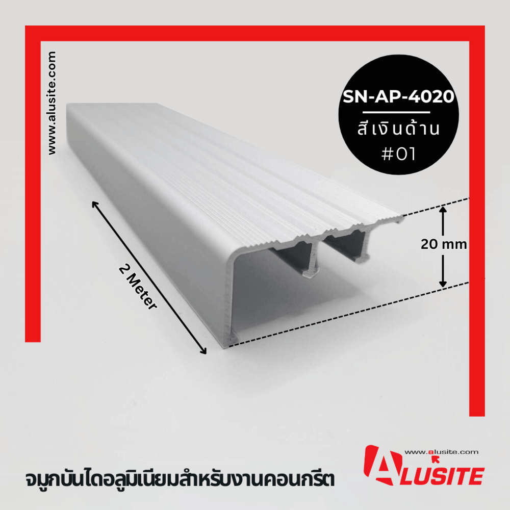 จมูกบันไดอลูมิเนียม หน้ากว้าง 40 มม. ยาว 2 เมตร SN-AP-4020 Matt Silver.Alusite