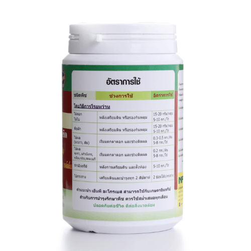 ไม้ผล ใช้ เอ็นพี อะโกรเบส 0.3-0.5 กิโลกรัม ต่อต้น ในช่วงแตกตาดอก และติดผล