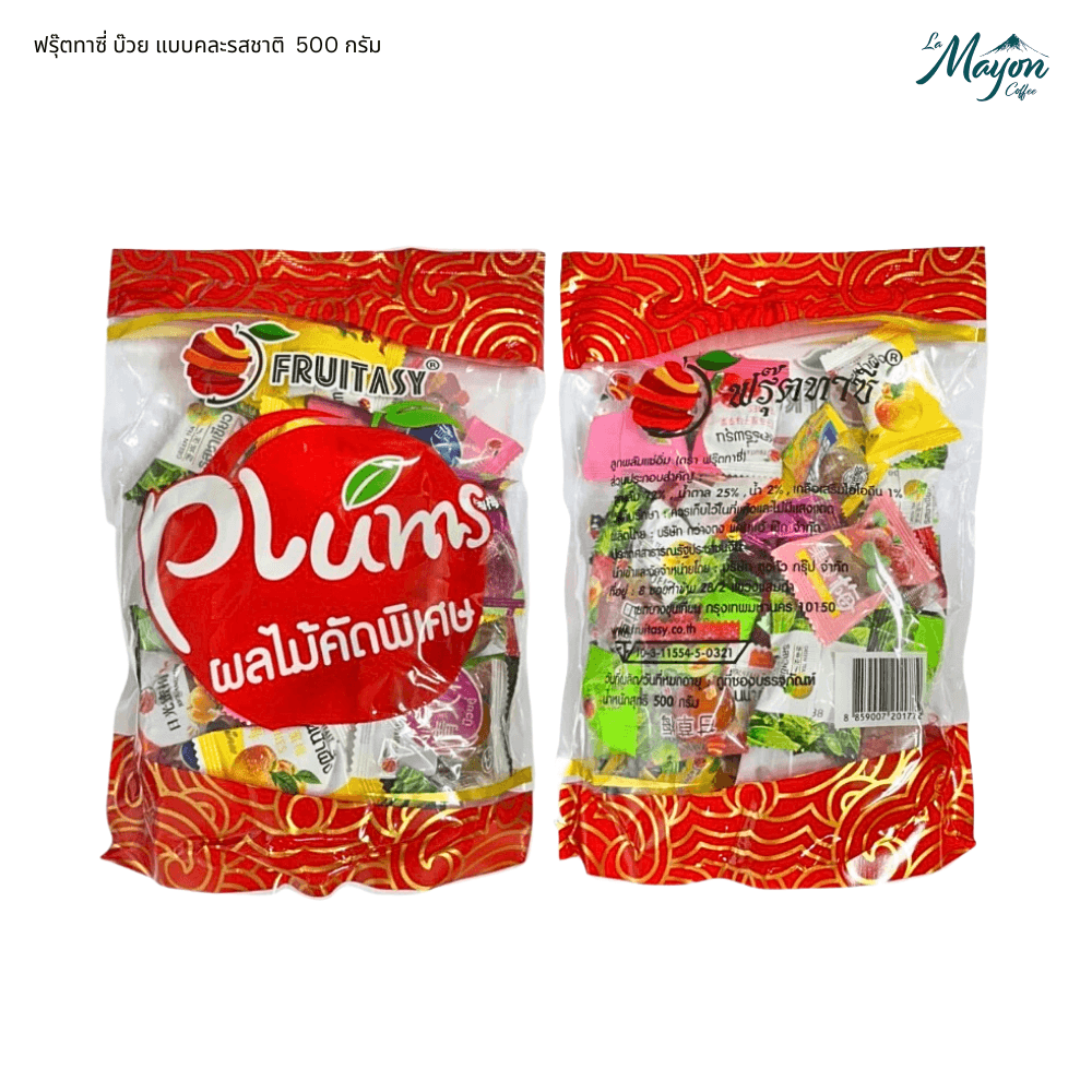 คุณสมบัติของ ฟรุ๊ตทาซี่ บ๊วย แบบคละรสชาติ 500 กรัม