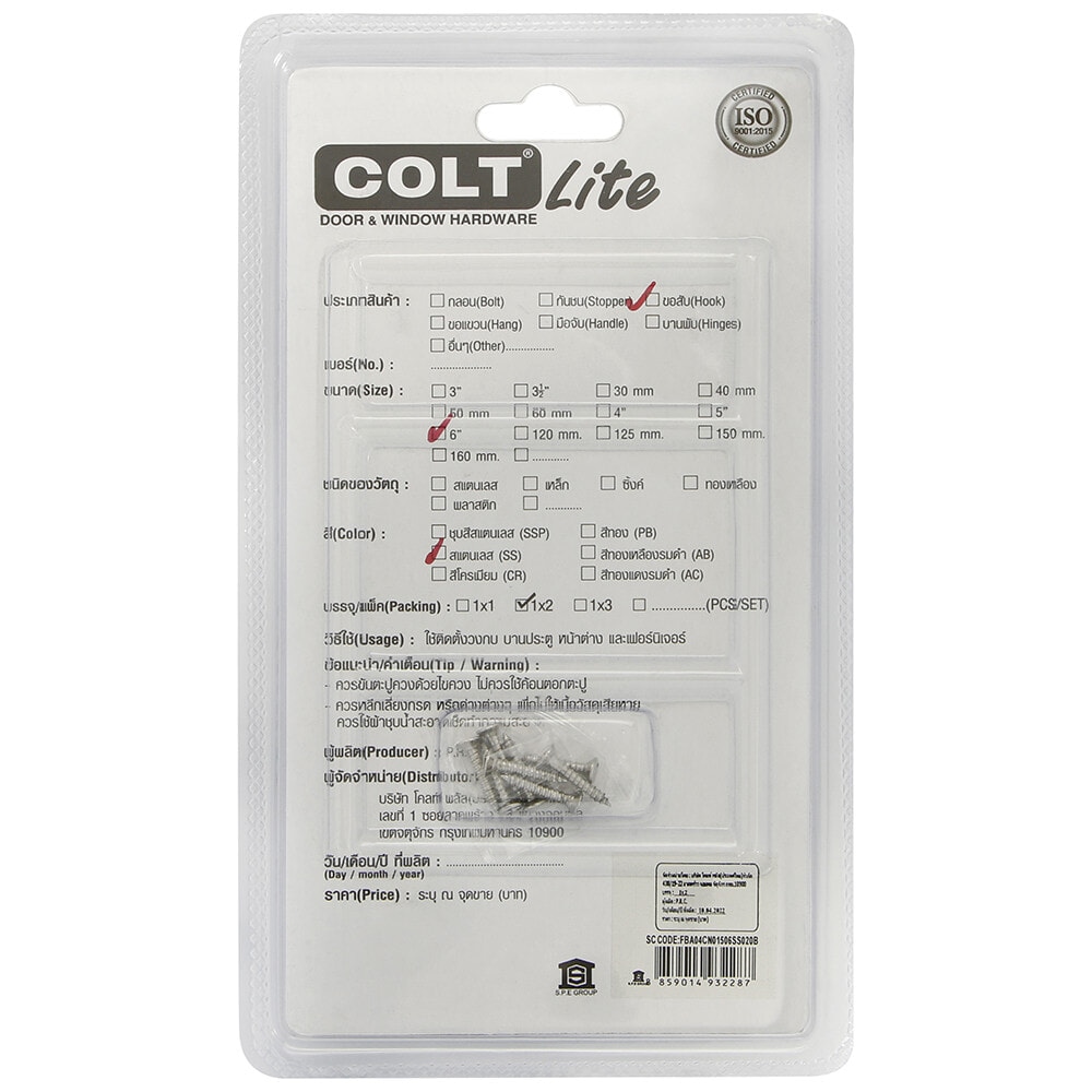 ขอสับหน้าต่าง COLT LITE รุ่น 015 ขนาด 6 นิ้ว สีสแตนเลส เป็นอุปกรณ์สำหรับล็อคหน้าต่างให้แน่นหนา ป้องกันการเปิดจากภายนอก ผลิตจากสแตนเลสคุณภาพดี แข็งแรง ทนทาน ไม่เป็นสนิม ติดตั้งง่าย เหมาะสำหรับใช้กับหน้าต่างทุกประเภท