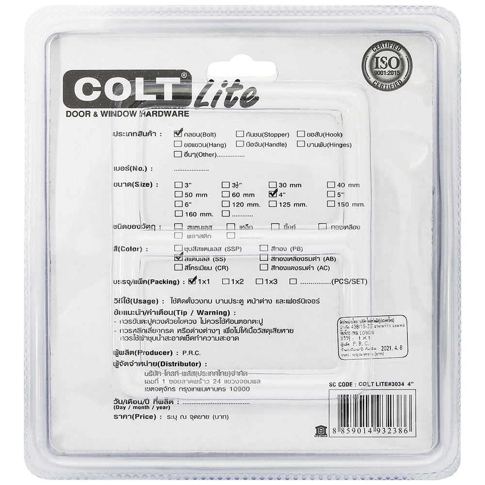 | รุ่น | กลอนขวางสแตนเลส COLT LITE #3034 4 |