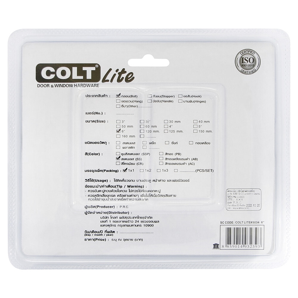 | รุ่น | กลอนขวางสแตนเลส COLT LITE #3034 6 |