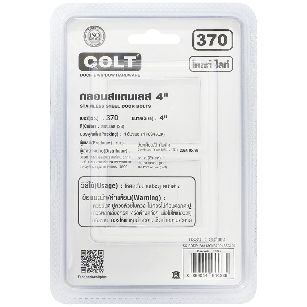 | รุ่น | กลอนสับสแตนเลส COLT LITE #370 4 นิ้ว |