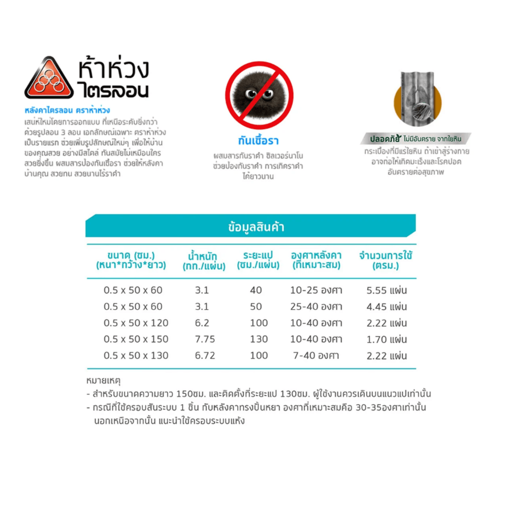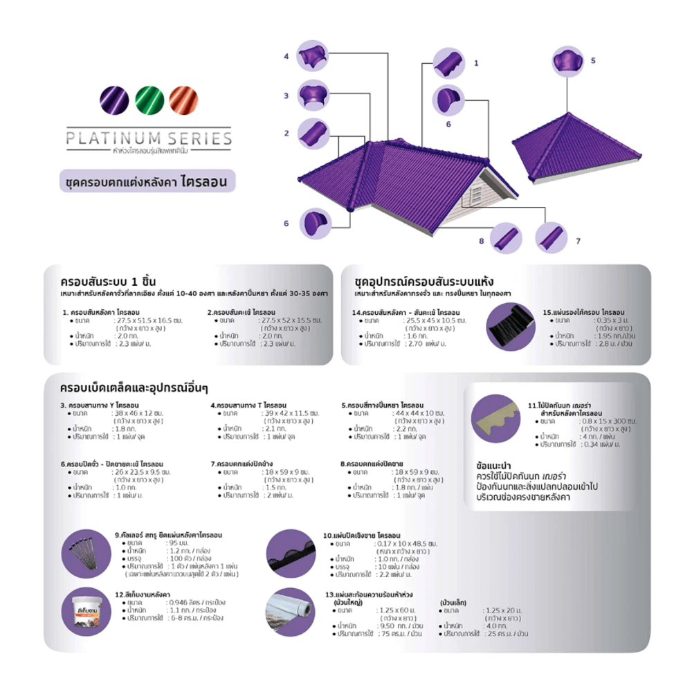 | รุ่น | กระเบื้องไตรลอน รุ่นสีแพลทตินั่ม |