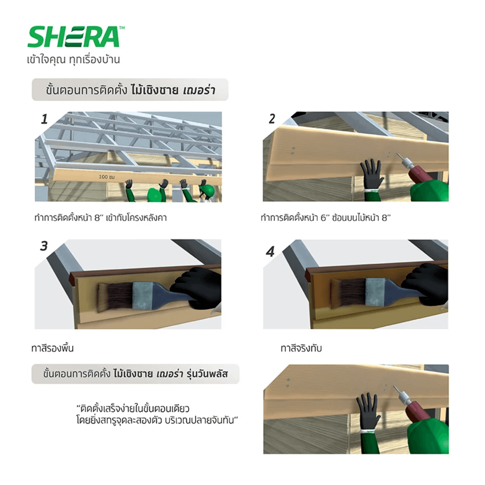 เพิ่มมิติ ด้วยเชิงชาย 2 เลเยอร์ในแผ่นเดียว ทนทาน-เนื่้อแน่ เต็มแผ่น ไม่แตกร้าว งานเสร็จเร็ว-ด้วยความยาว 3 ม.และ 4 ม. จบในขั้นตอนเดียว- ผลิตภัณฑ์ฉลากเขียว (Green label certificate) จากประเทศสิงคโปร์ ซึ่งรับรองเรื่องวัสดุที่สามารถ ผ่านเกณฑ์เรื่องการรักษาสิ่งแวดล้อมรายแรกในประเทศไทย