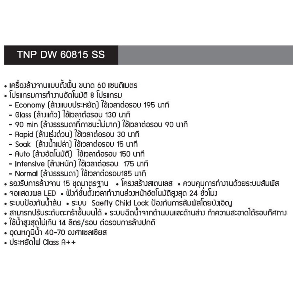 | รุ่น | TNP DW 60815 SS |