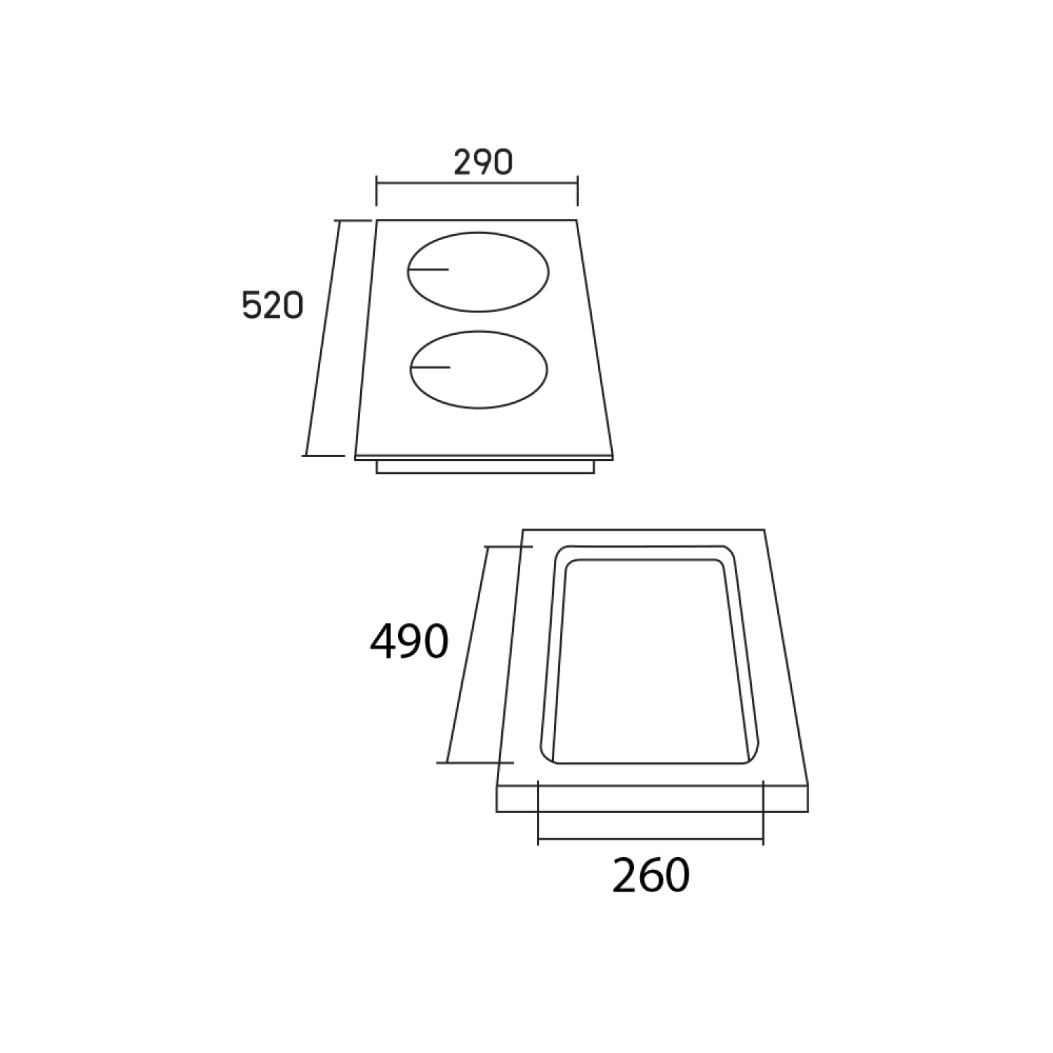 กําลังไฟรวม : 3500W หัวเตาด้านหน้า : 180 มม., 1800 / 2000W (Booster) หัวเตาด้านหลัง : 160 มม., 1200 / 1500W (Booster)