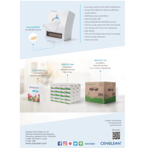 ด้วยมาตรฐานการผลิตระดับสูงทำให้กระดาษเช็ดปาก ป๊อป อัพ ของ Cenclean มีคุณภาพระดับสากล