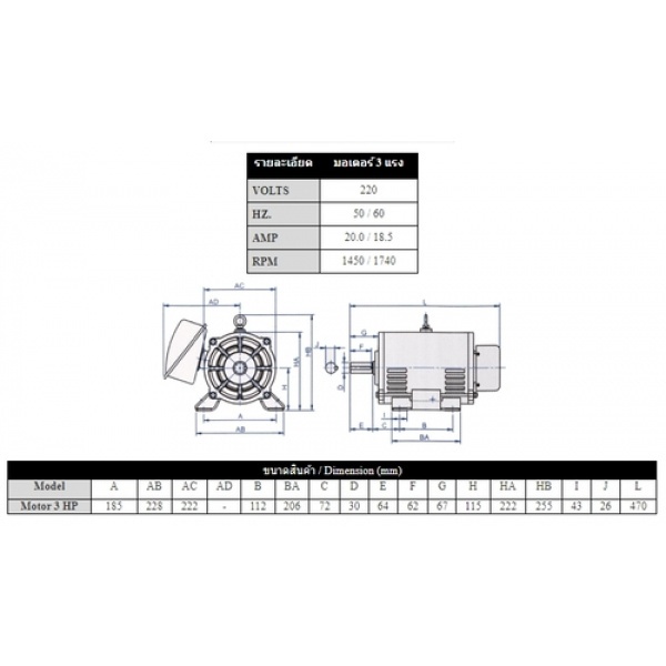 มอเตอร์ (3 แรง) Motor (3HP) มั่นใจด้วยคุณภาพมาตรฐานสากลผลิตตามกระบวนการ QC 100% ที่มีคุณภาพ พร้อมทั้งการออกแบบ BODY ที่สวยงามและทันสมัยลงตัวตอบสนองการทำงานอย่างมีประสิทธิภาพ
