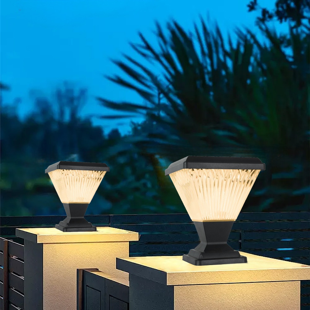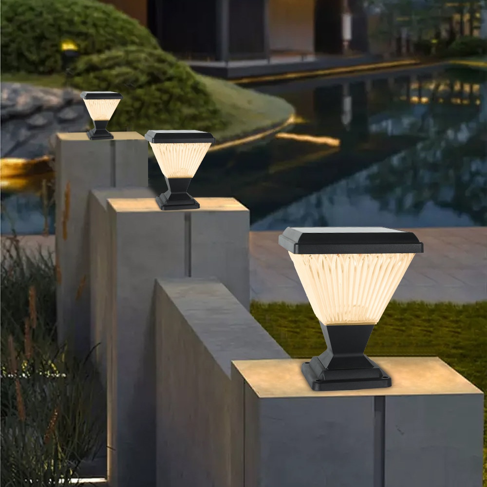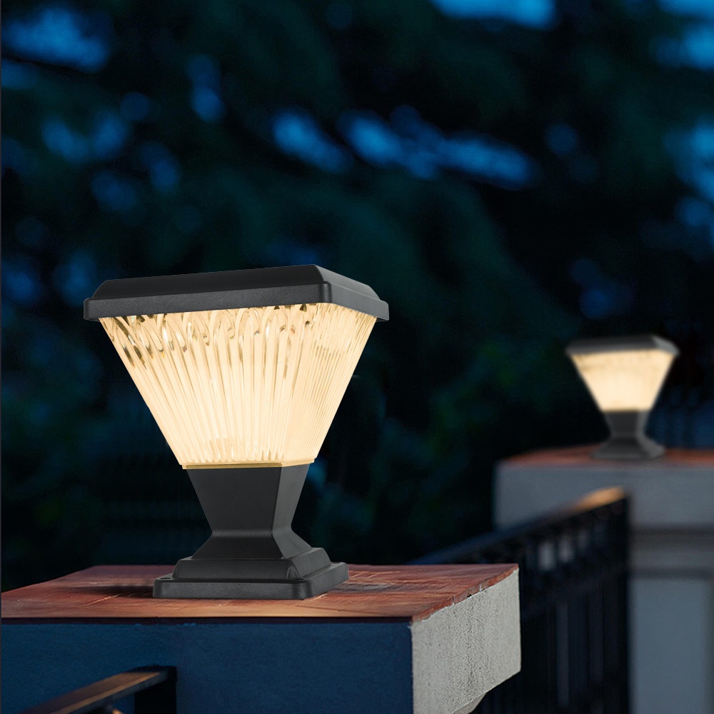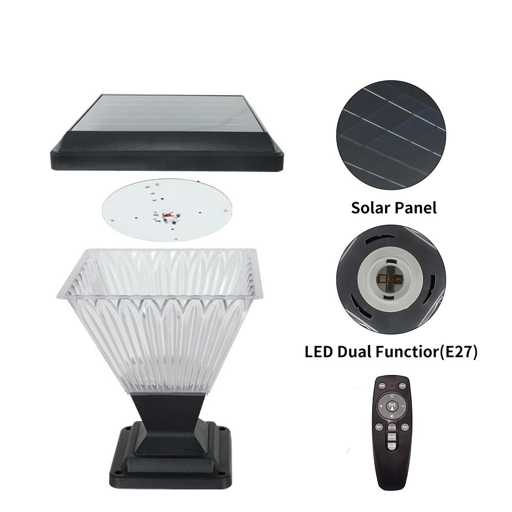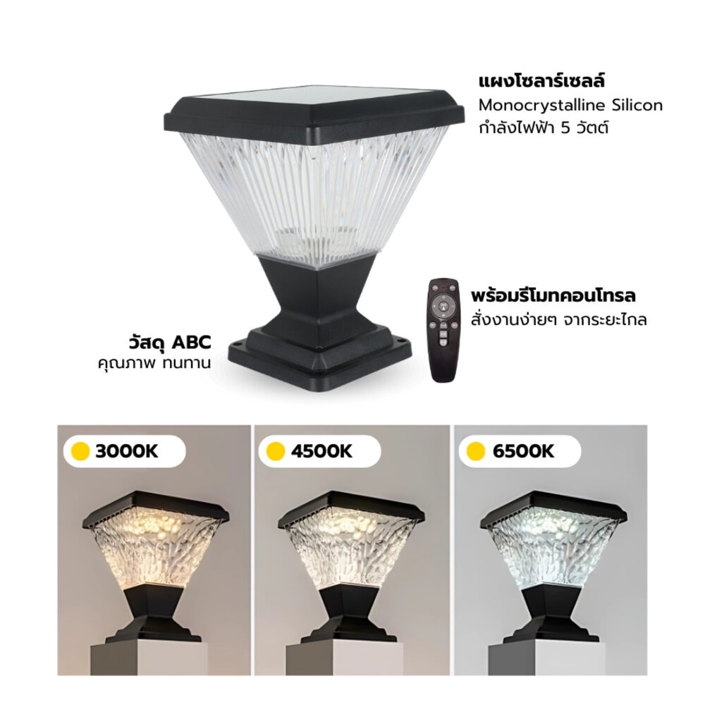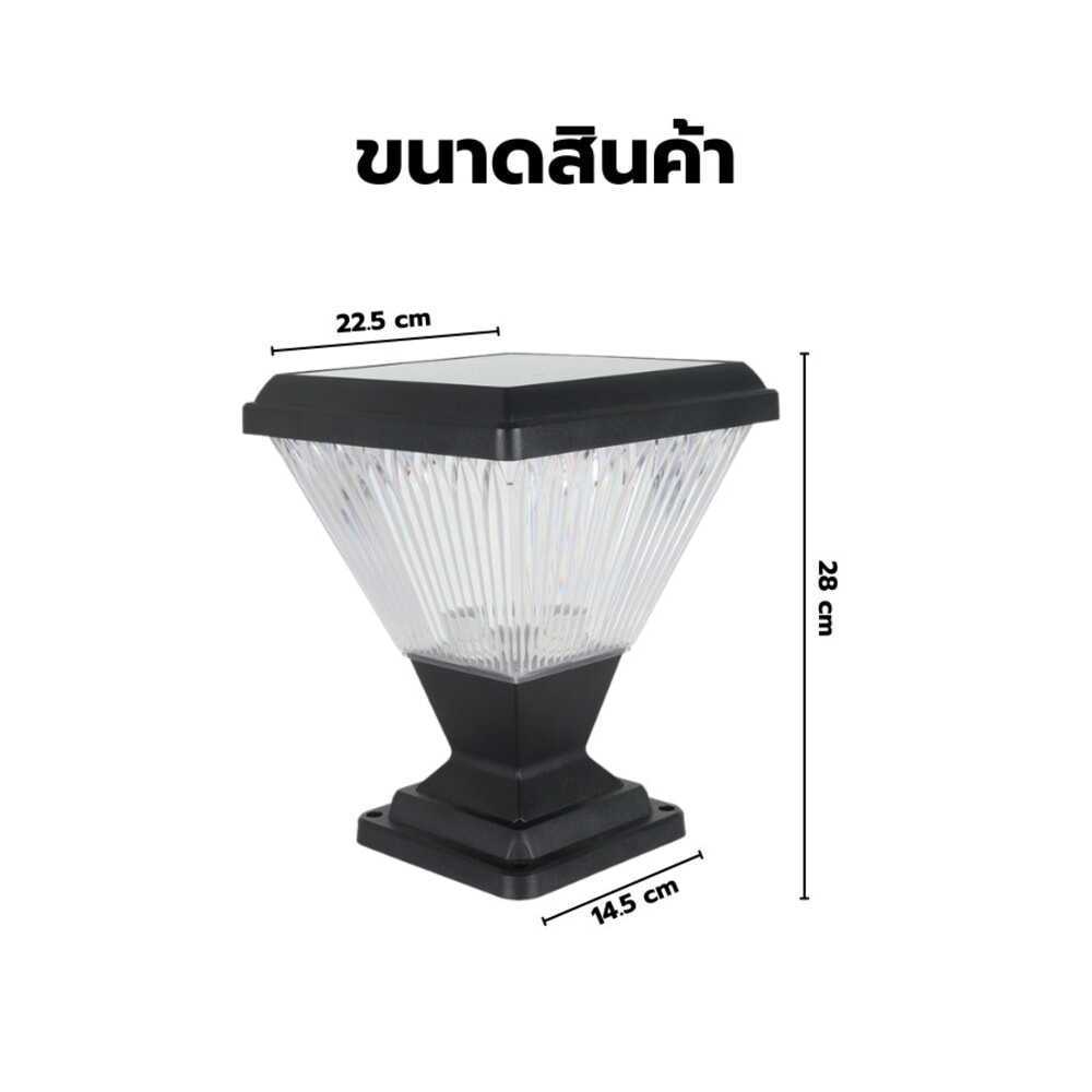 EILON โคมไฟหัวเสาโซลาร์เซลล์ทรงเหลี่ยมลายตรง 15W ปรับได้ 3 แสง พร้อมรีโมทคอลโทรล รุ่น EZTD-FZSW-15W สีดำ