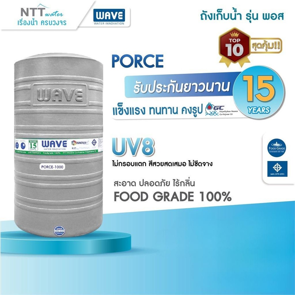 สามารถทนต่อสภาพแวดล้อมและแรงกระแทกได้ดี มีอายุการใช้งานยาวนาน ป้องกันแสงแดดถังไม่ซีดจางด้วย UV ระดับ 20 สารยับยั้งเชื้อแบคทีเรียที่มีประสิทธิสูงสุดด้วย