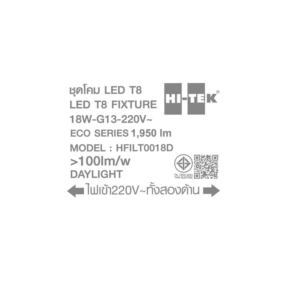 ชุดราง LED T8 18W อีโค่ซีรีส์ เข้าไฟ 2 ด้านแสงขาว HI-TEK