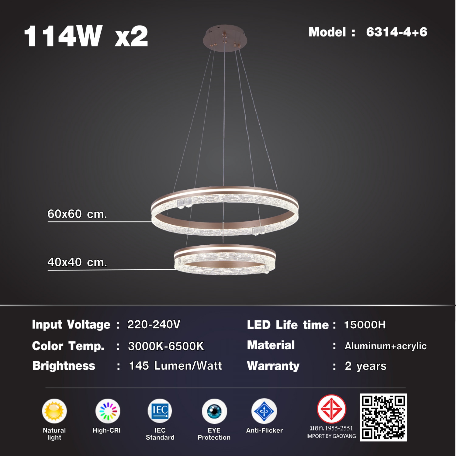 -LED กำลังไฟ 114W x2 ให้แสงสว่างนุ่มนวล