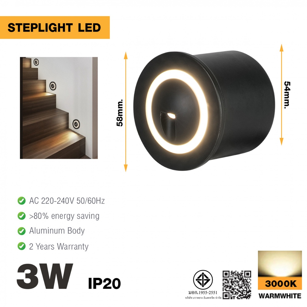 - เหมาะสำหรับใช้งานภายในอาคาร ติดตั้งได้ในโถงทางเดิน บันได ห้องนอน หรือพื้นที่ที่ต้องการแสงสว่างเสริม