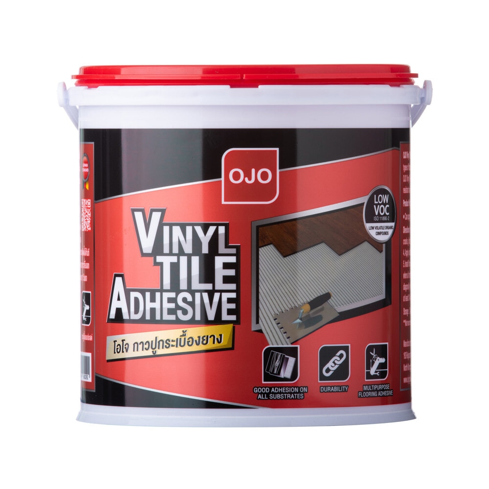 เป็นกาวอะคริลิคสูตรน้ำพร้อมใช้ ใช้งานง่ายไม่มีกลิ่นฉุน ถูกพัฒนาเพื่อใช้ปูกระเบื้องยางทั่วไป กระเบื้องยางลายไม้ และกระเบื้องไวนิล สามารถทาทับพื้นผิวเดิมได้ ไม่ว่าจะพื้นปูนเก่า หรือใหม่ พื้นกระเบื้อง พื้นไม้ เหมาะสำหรับงานภายในอาคาร โอโจ กาวปูกระเบื้องยาง แห้งเร็ว และไม่หดตัว ทนความชื้น ทนด่าง ติดแน่น ทนทานไม่หลุดร่อน อายุการใช้งานยาวนาน