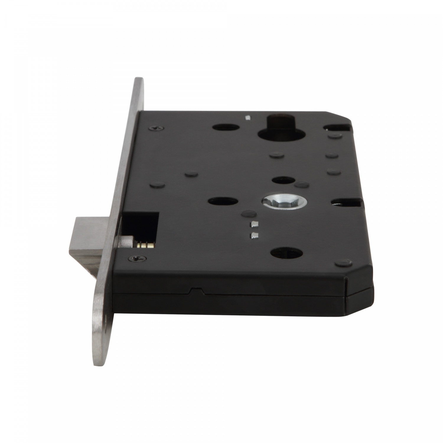 ตลับกุญแจเป็นอุปกรณ์อะไหล่สำหรับเปลี่ยน MORTISE ผลิตจากสเตนเลสคุณภาพ ทนต่อการเกิดสนิม ไม่จับคราบดำ และไม่บิดเบี้ยวเสียทรงจากการเสียดสีของดอกกุญแจ เหมาะติดตั้งบานประตูไม้ที่มีระยะเจาะตลับกุญแจ 55 มม. ส่วนความกว้างของเพลทด้านหน้า 24 มม. และระยะมือจับ 72 มม.