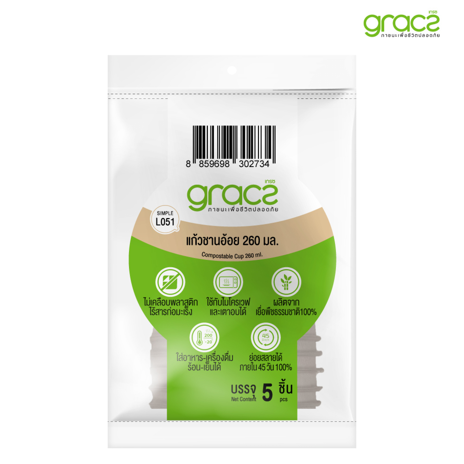 ภาชนะสำหรับใส่อาหารและเครื่องดื่ม แบบใช้แล้วทิ้ง ย่อยสลายได้เองตามธรรมชาติ