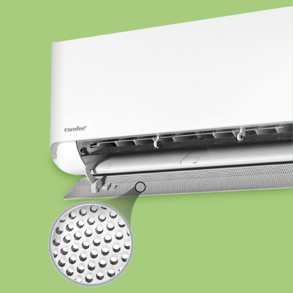 - บานสวิงแบบคู่ พร้อม Micro-Holes บานสวิงแบบคู่ ช่วยกระจายลมให้เย็นเร็วในแนวกว้าง พร้อมรูขนาดเล็กกว่า 5,013 รู ช่วยกระจายลม