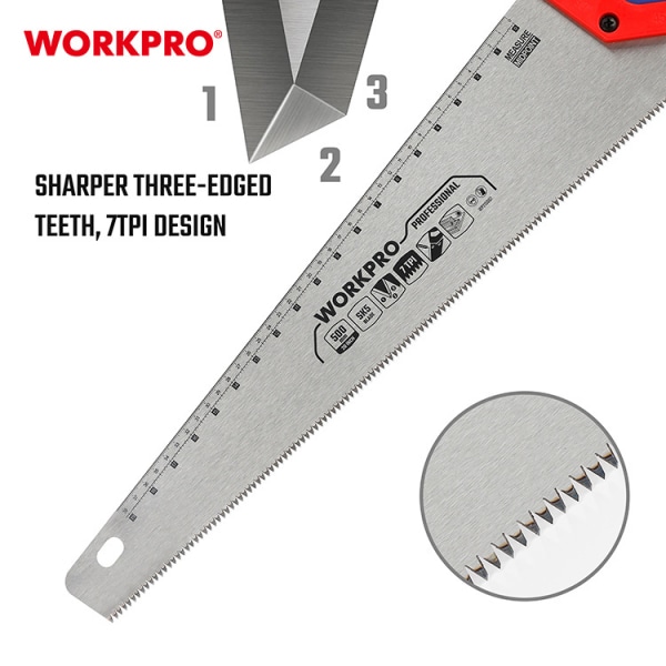 • มีซี่ฟัน 3 คมเรียงกันตลอดความยาวของแผ่นเหล็ก 7 ฟัน ต่อ 1 นิ้ว (7TPI) ช่วยเพิ่มประสิทธิภาพงานตัดให้รวดเร็วมากยิ่งขึ้น