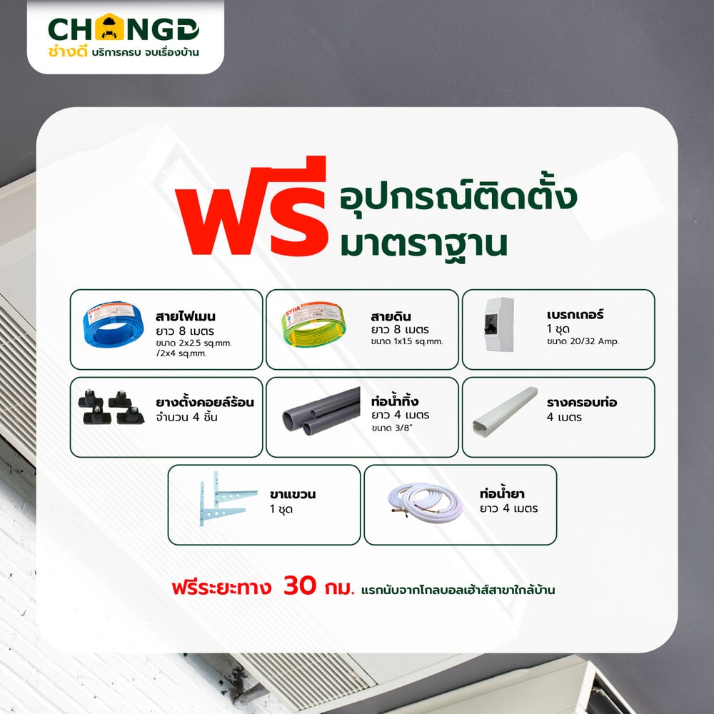7.กรณีอุปกรณ์นอกมาตรฐานที่แถมมากับสินค้าและใช้ในการติดตั้งไม่คิดค่าแรง
