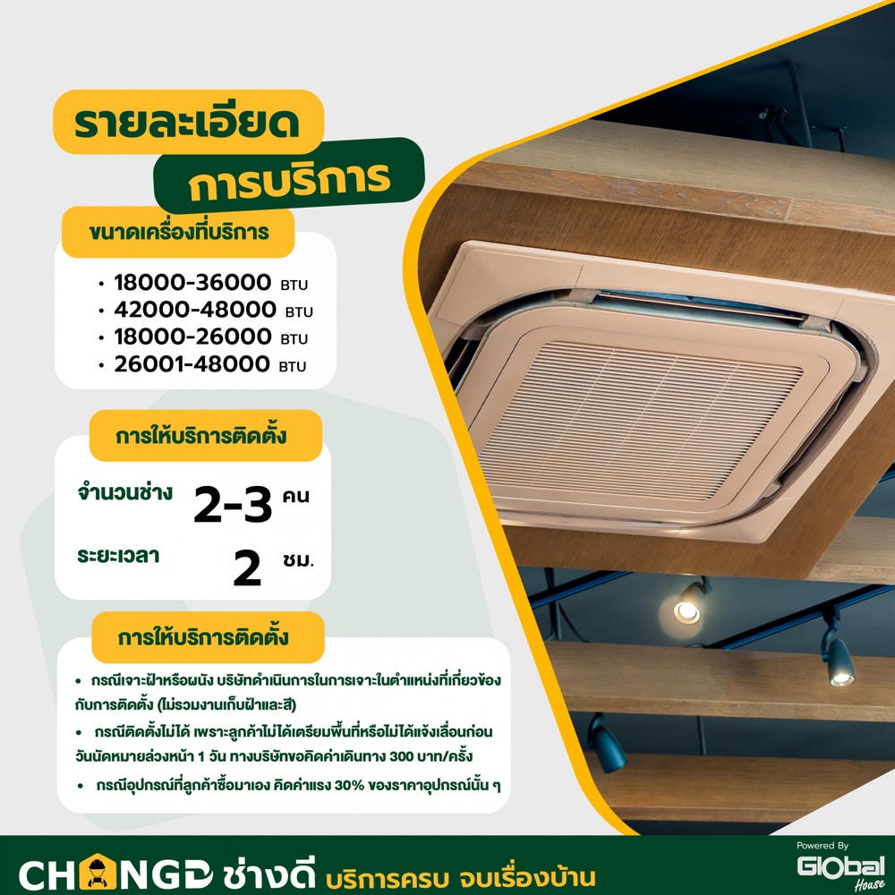 1. กรณีเจาะฝ้าหรือผนัง บริษัทดำเนินการในการเจาะ ในตำแหน่งที่เกี่ยวข้องกับการติดตั้ง (ไม่รวมงานเก็บฝ้าและสี)