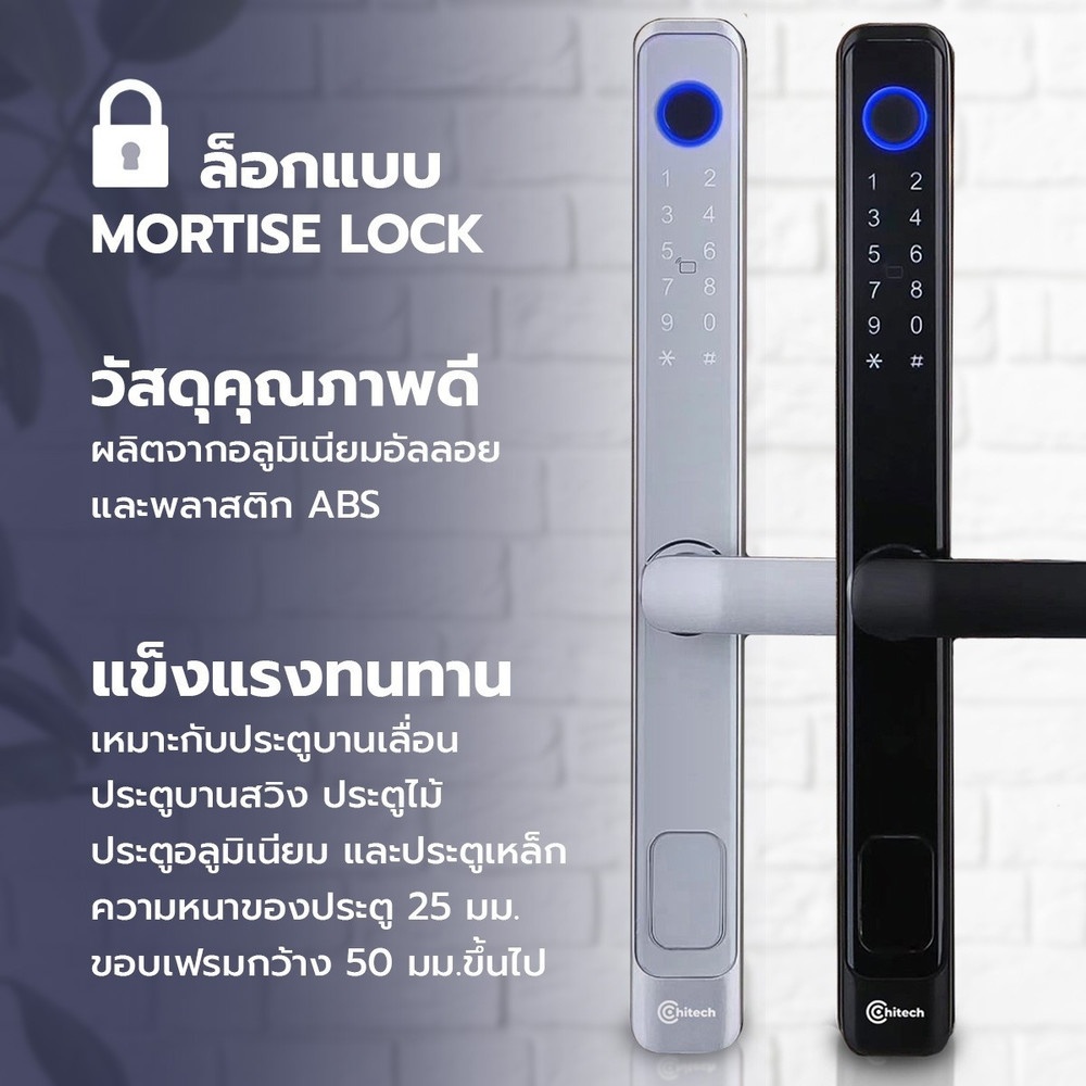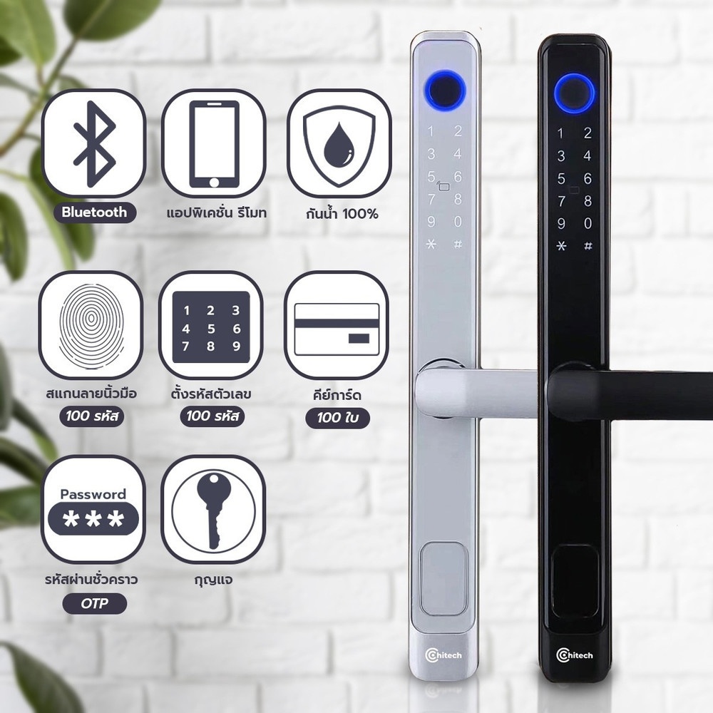 เพิ่มความปลอดภัยให้กับทรัพย์สินและคนในบ้านได้มากยิ่งขึ้น ด้วยกลอนดิจิตอล C.HITECH ผู้ช่วยในการป้องกันการโจรกรรมที่มีประสิทธิภาพ พร้อมตอบโจทย์การใช้งานของบ้านยุคใหม่ได้เป็นอย่างดี ด้วยฟังก์ชันการปลดล็อก 5 รูปแบบ ไม่ว่าจะเป็นการปลดล็อกผ่านแอปพลิเคชัน, สแกนลายนิ้วมือ, ตั้งรหัสตัวเลข, ใช้บัตรผ่าน หรือใช้กุญแจ เพิ่มความสะดวกให้กับผู้ใช้ในหลายช่วงอายุ และยังมาพร้อมฟังก์ชันต่าง ๆ ที่ช่วยเสริมความมั่นใจและปลอดภัยอีกขั้นให้กับคุณ