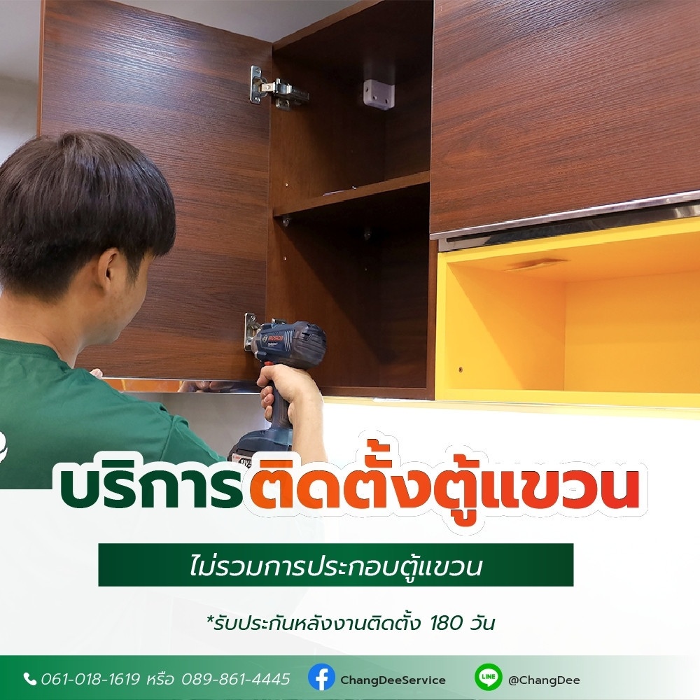ลูกค้าเป็นผู้จัดเตรียมตู้แขวนหรือหน้าบาน รวมทั้งกำหนดจุดติดตั้ง