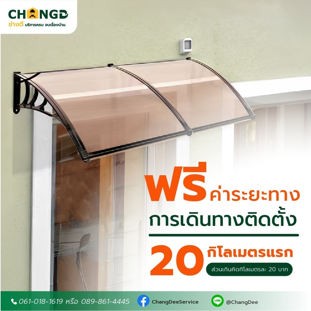 ติดตั้งกันสาดสำเร็จรูป ความกว้างไม่เกิน 1.2 เมตร