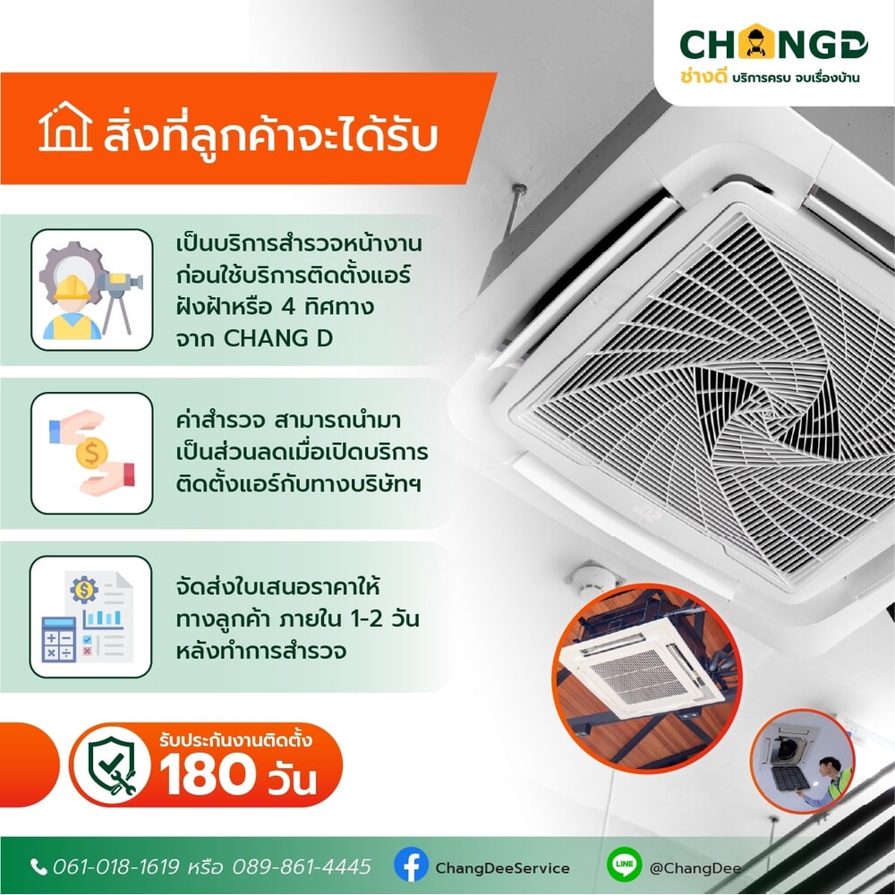 บริการสำรวจติดตั้งแอร์ฝังฝ้า หรือ 1 Way ,4 Way , 360 องศา จาก ช่างดี อีกหนึ่งบริการดี ๆ ที่เราตั้งไจดูแลคุณ หมด